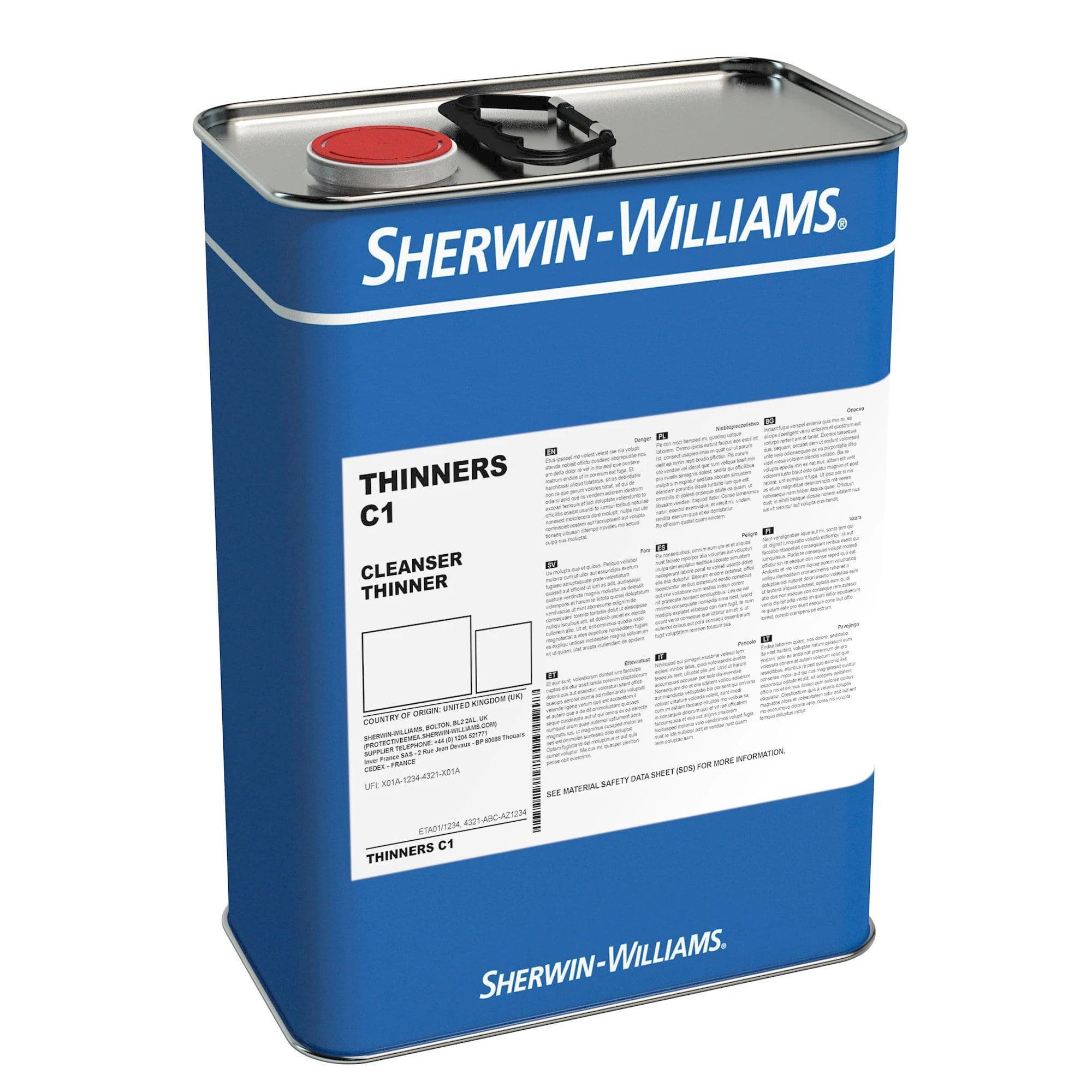 Sherwin-Williams Cleanser & Thinner No.1 used for specific products in the Sherwin-Williams range.